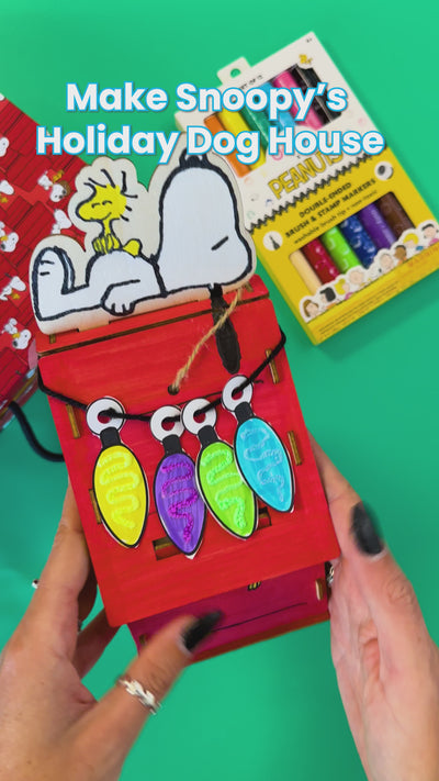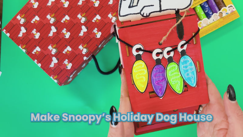 Use the OOLY x Peanuts Color in Wooden Birdhouse Kit to design Snoopy’s iconic red dog house, then add some festive fun printing and coloring our OOLY holiday lights printable ✨