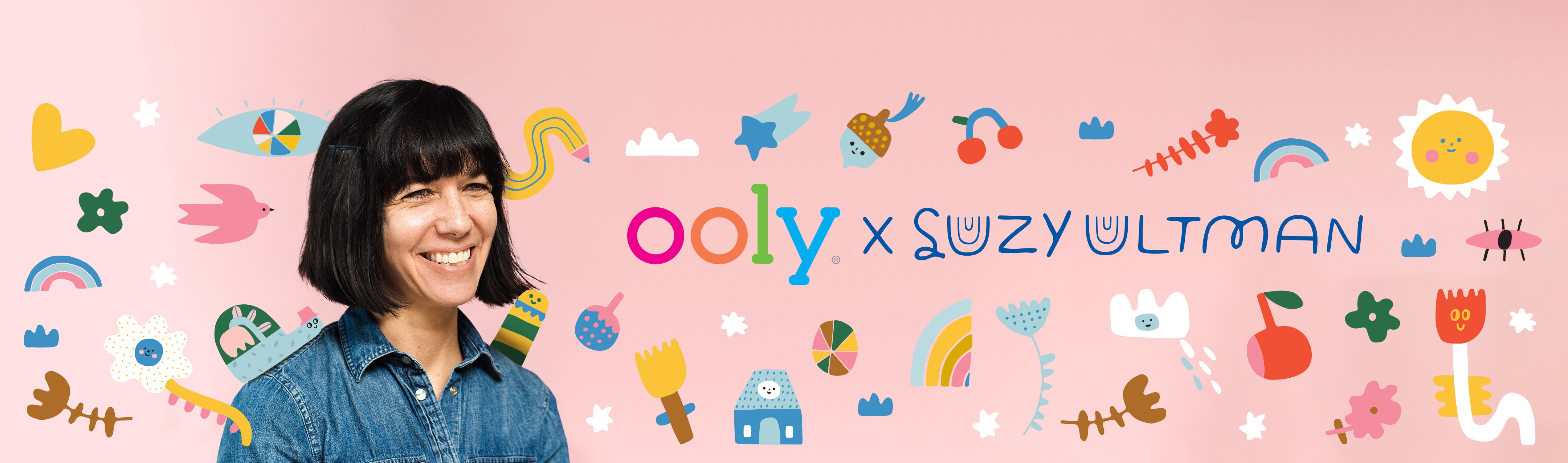 Suzy Ultman is an illustrator, product designer, and toy creator known for her modern, bright, and quirky designs. In her first-ever collaboration with OOLY, she brings her signature style to Stickiville and Tattoo-Palooza with original designs that celebrate play, creativity, connection, and community in the world around us. ✨