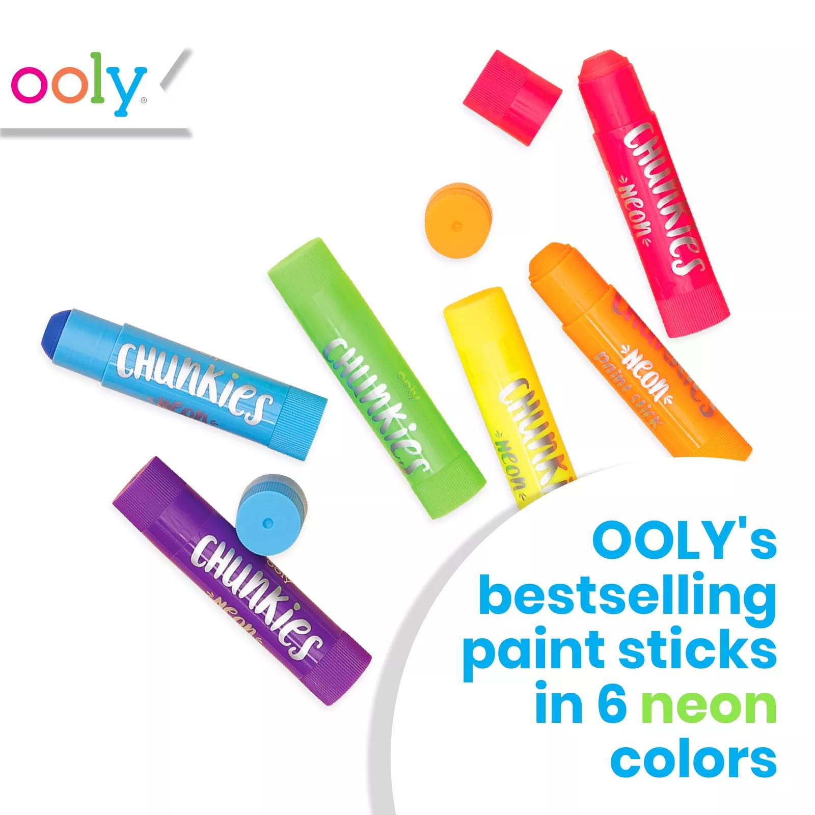 A neon set of Chunkies Paint Sticks in a travel-friendly pack of 6! These bright neon paint sticks are easy to hold and come in 6 outstanding neon quick drying colors. You twist up the barrels for long-lasting, mess-free fun that kids and adults alike will love. When you want to paint colorful pictures but want to leave the mess behind then it's time to reach for Chunkies Paint Sticks. These neon paint sticks are super easy to use, clean and portable because they're like painting with a crayon. Just uncap, twist and start painting. Chunkies neon are a set of 6 brilliantly colored paint sticks each in a thick barreled casing so they're easy for little hands to hold. The paint colors are quick drying and won't smudge, but it's easy to mix colors to make even more colors. It's magic!