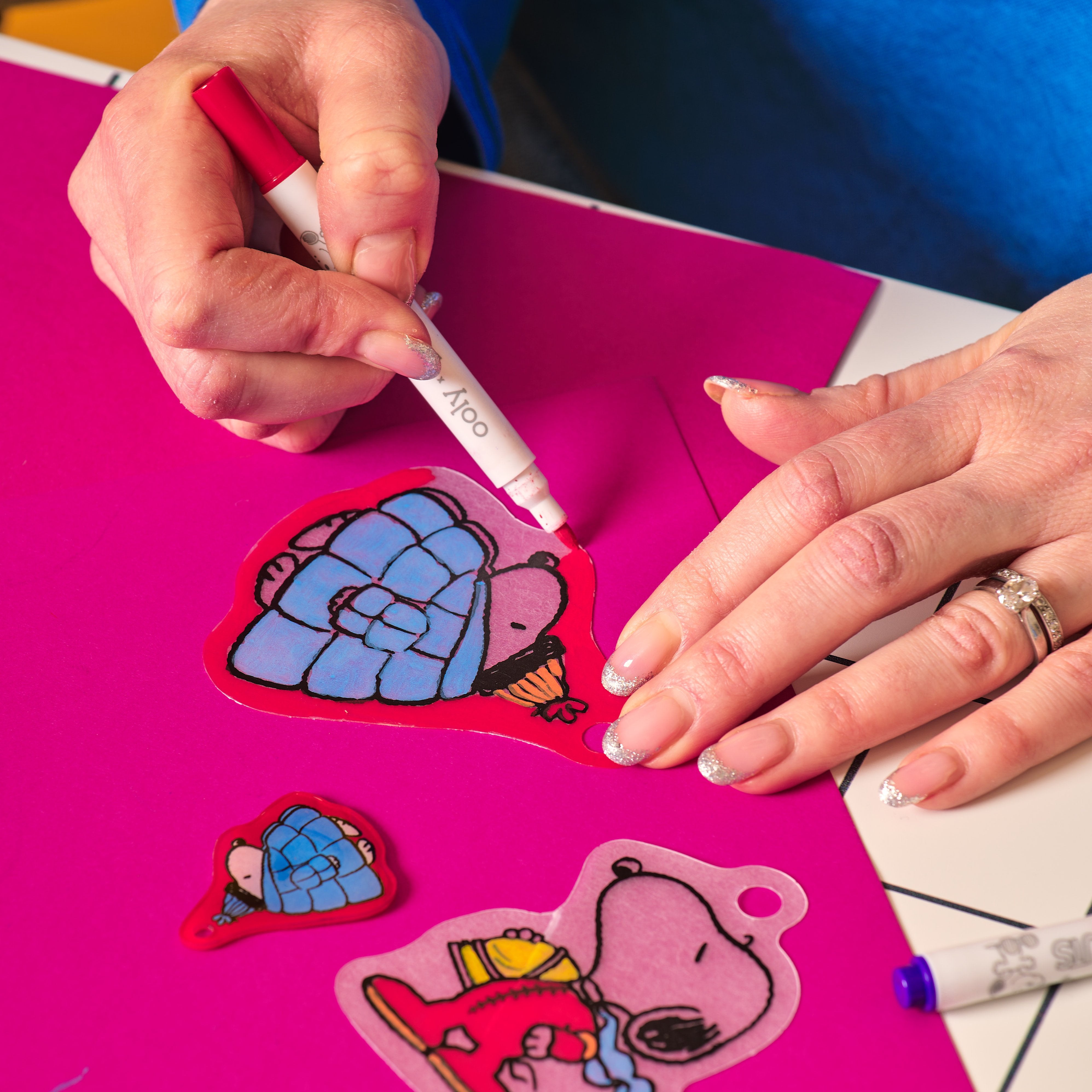 Make your own Snoopy charm-making kit! The OOLY x Peanuts DIY Shrink Art Kit lets you create 20 colorful Snoopy charms that shrink down to accessory size when baked.